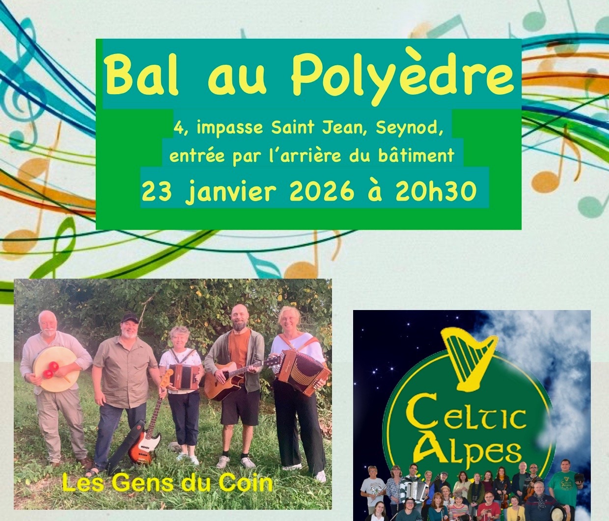avec Les Gens du coin et Celtic Alpes Musiques et danses de tradition populaire de France et d’ailleurs.Nouvelles danses expliquées sur place.Ouvert à tous et à toutes, débutant(e)s et confirmé(e)s.Conditions d’entrée : Libre participation financière du public Voir l'affiche